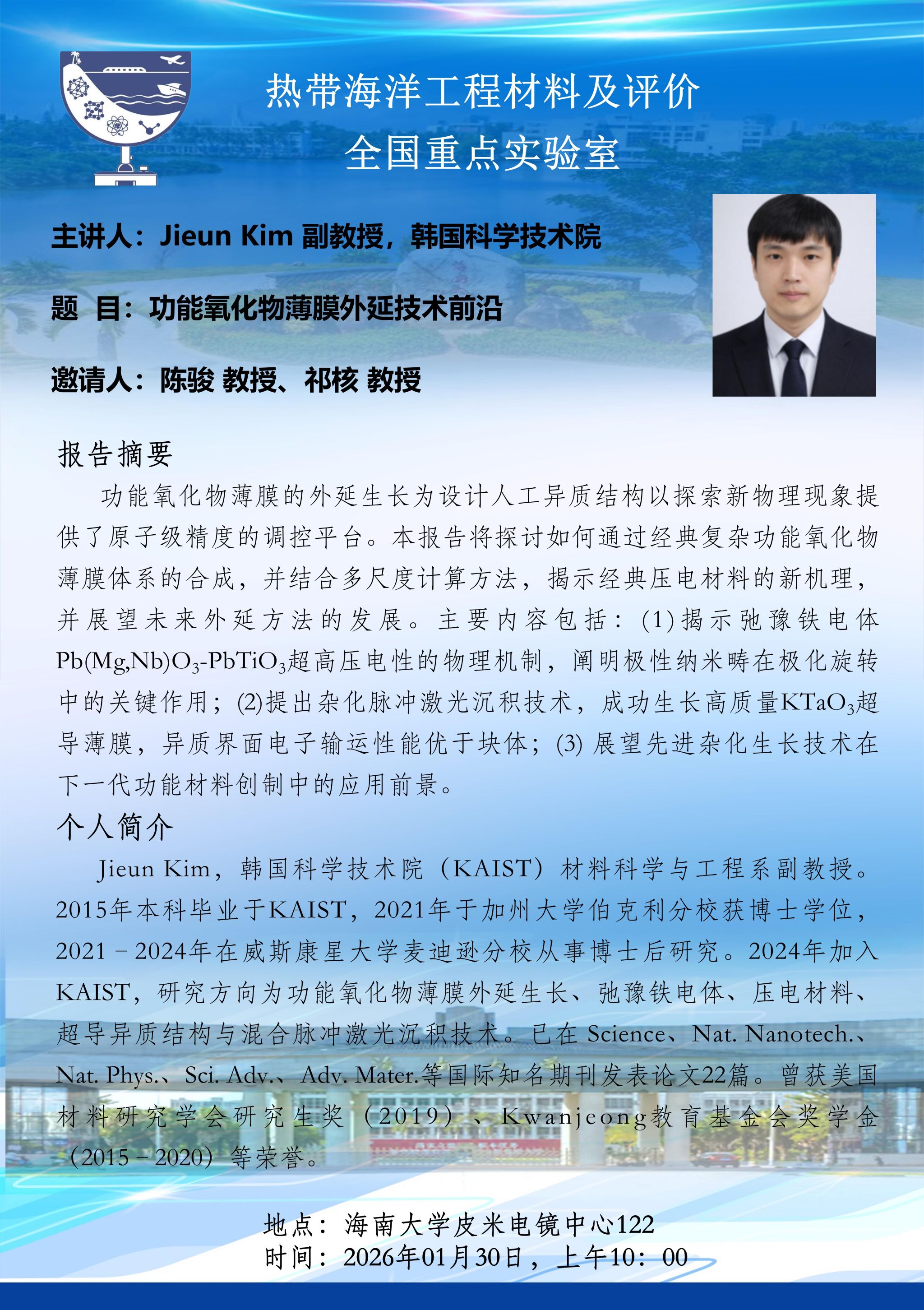 学术讲座 | 功能氧化物薄膜外延技术前沿